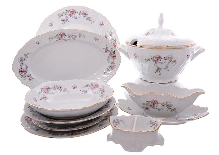 Столовый сервиз 6/25 Bernadotte, декор дикая роза, отводка золото