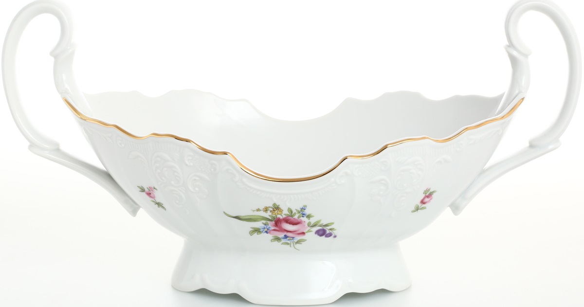 Блюдо для фруктов на ножке с 2 ручками Bernadotte, декор мейсенский букет
