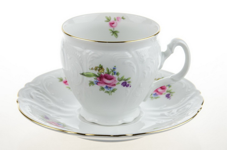 Чайная пара 240 мл 160 мм высокая Bernadotte, мейсенский букет