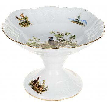 Салатник на ножке 16 см Bernadotte, декор охотничьи сюжеты