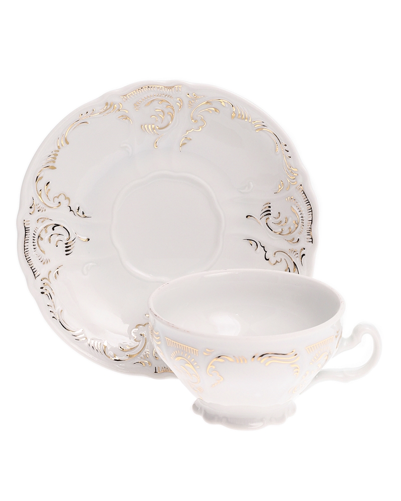 Чашка 205 мл с блюдцем 155 мм низкая Bernadotte, декор золотой орнамент