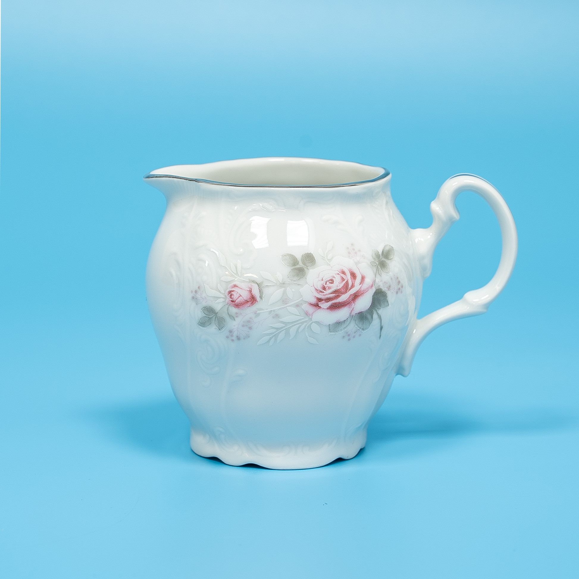 Молочник высокий 250 мл Bernadotte, декор бледные розы, отводка платина