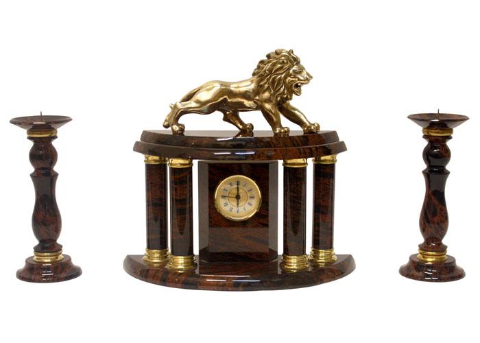 Часы, два подсвечника (обсидиан) 300х140х180 арт. ч-006