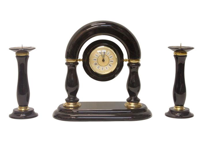 Часы, два подсвечника (обсидиан) 300х150х350 арт. ч-009
