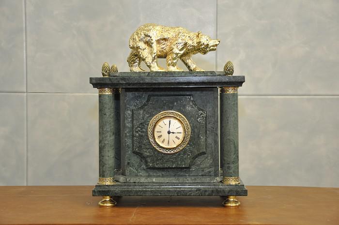 Часы из зеленого мрамора с медведем