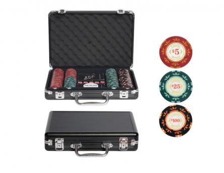 Набор для покера casino royale на 200 фишек. Модель: Набор для покера Casino Royale на 200 фишек Номинал фишек: 5-75шт, 25-75шт, 100-50шт Сумма номиналов: 7250 Карты: 100% пластик 2 колоды Кости: 5 костей Дополнительно: фишка дилера Размер в упаковке (см): 31/24/8 Вес (кг): 4.1 Упаковка: полиграфическая Производитель: Partida Страна производитель: Китай