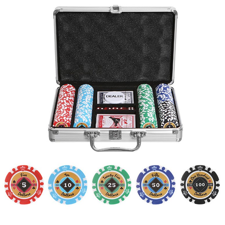 Набор для покера crown на 200 фишек. Модель: Набор для покера Crown на 200 фишек Номинал фишек: 5-50 шт., 10-50 шт., 25-50 шт., 50-25 шт., 100-25 шт. Сумма номиналов: 5750 Карты: 2 колоды Кости: 5 костей Дополнительно: фишка «Dealer», подрезная карта, 2 ключа от кейса Размер в упаковке (см): 31/24/8 Вес (кг): 4 Производитель: Partida Страна производитель: Китай
