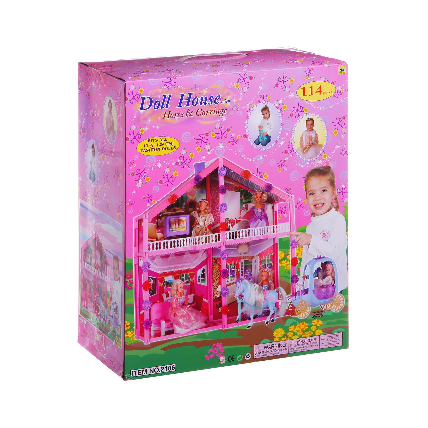 Дом для куклы с мебелью, каретой, лошадью, 114 деталей