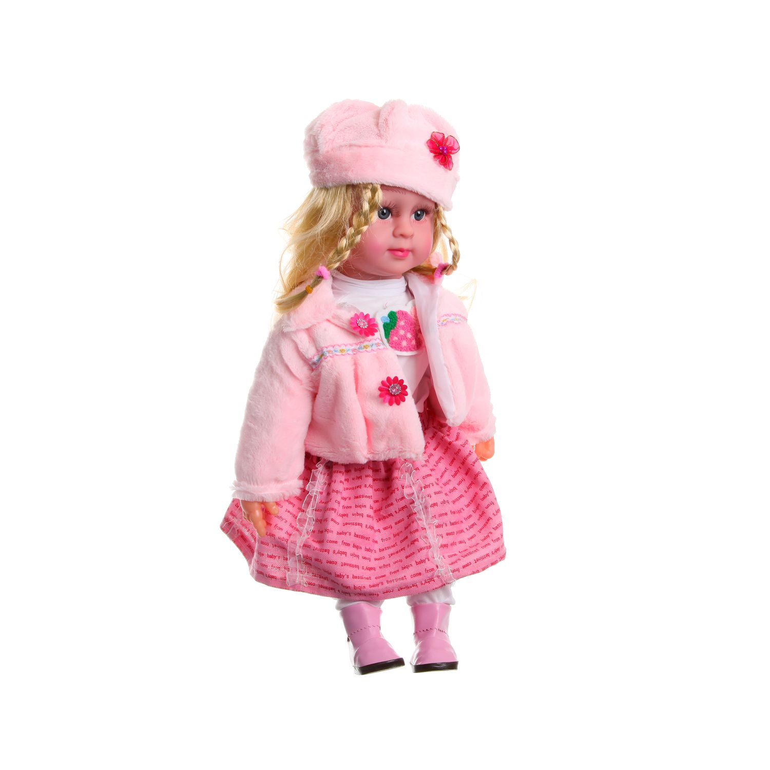Кукла с косичками в розовом наряде
