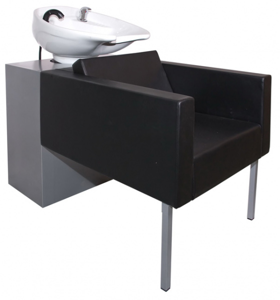 Профессиональная мойка домино. Профессиональная мойка для мытья волос на стальном каркасе с порошковым покрытием серебристого цвета. Комплектуется глубокой керамической раковиной, узлом наклона и комплектом смесителя. Кресло для клиента прямоугольной формы, с удобным наклоном съемной спинки, выполнено из высококачественного поролона, каркас обтянут искусственной кожей. Цвет обивки – черный, другой цвет под заказ. Размер (ДхШ): 120х66 см. Артикул: Домино-м Бренд: Имидж Мастер