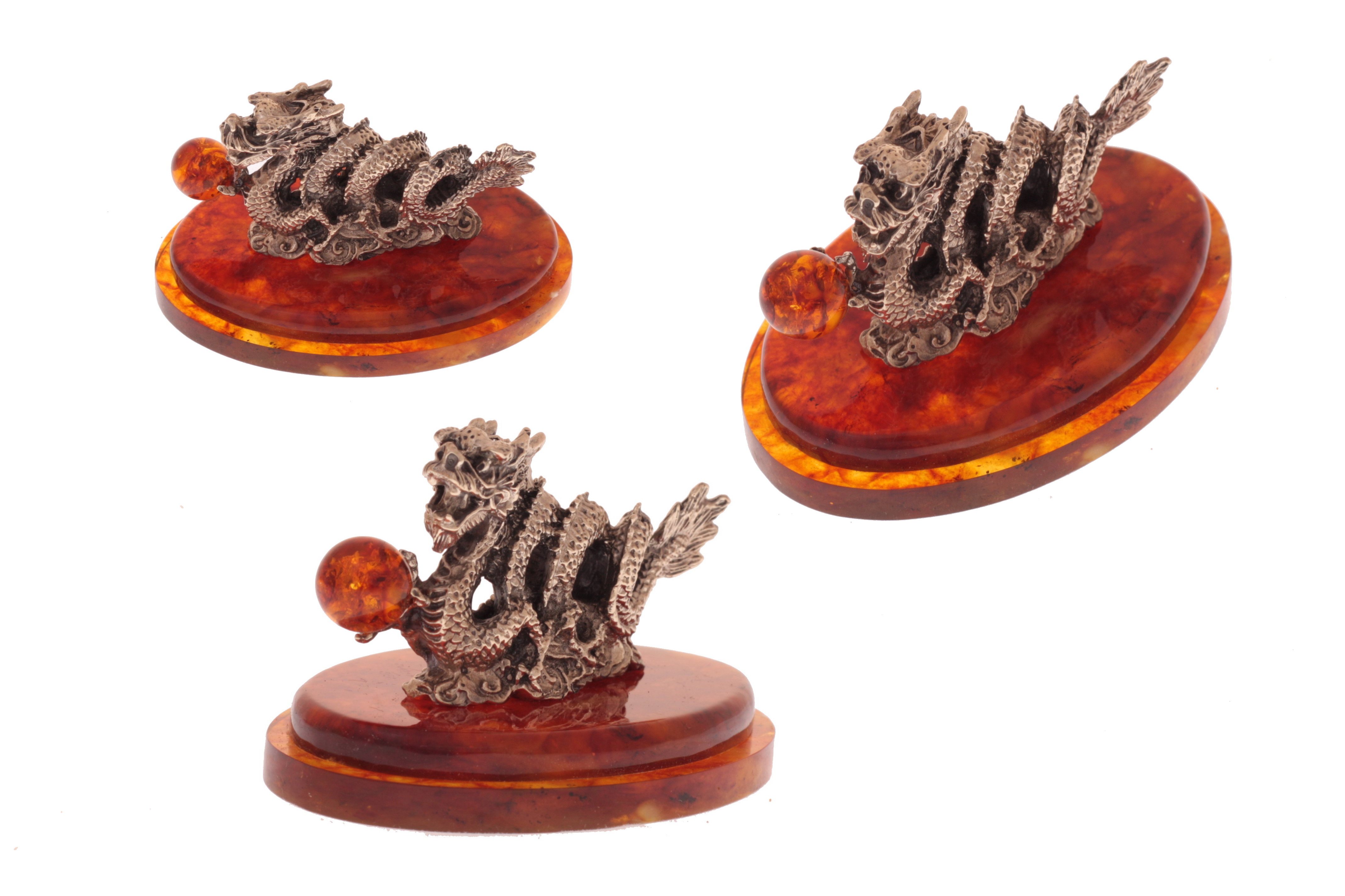 Сувенир "морской дракон" из янтаря. Состав: натуральный янтарь, белая ювелирная бронза. Может быть изготовлен из серебра 875 пробы. Высота: 4,5 см, основание: 7 х 4,5 см. Поставляется в подарочном футляре. В случае отсутствия товара на складе, срок изготовления и поставки от 3-х недель.