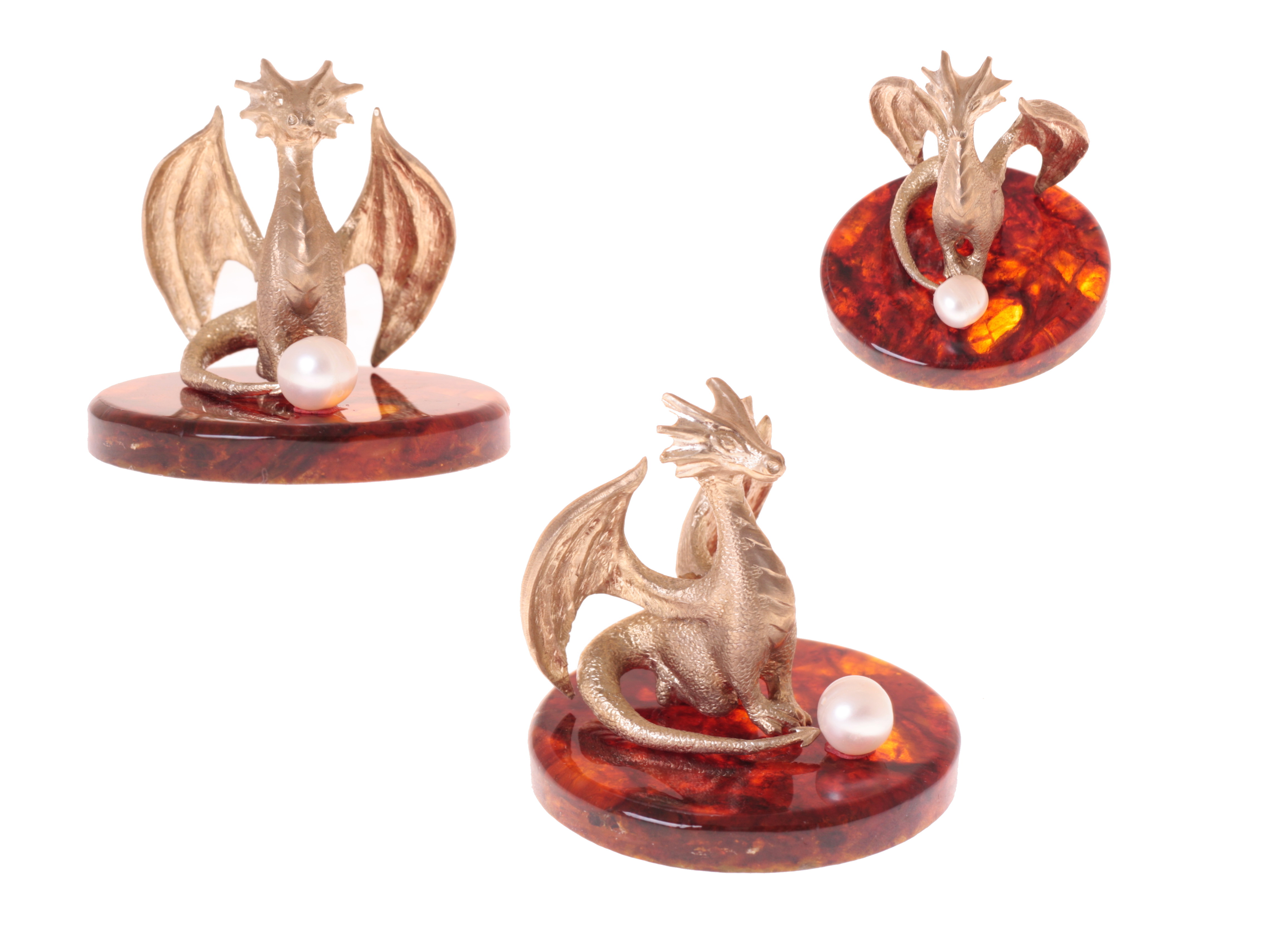 Сувенир "дракон" с жемчужиной из янтаря. Состав: янтарь, белая ювелирная бронза. Может быть изготовлена из серебра 875 пробы. Поставляется в подарочном футляре. В случае отсутствия товара на складе срок изготовления от 3-х недель.