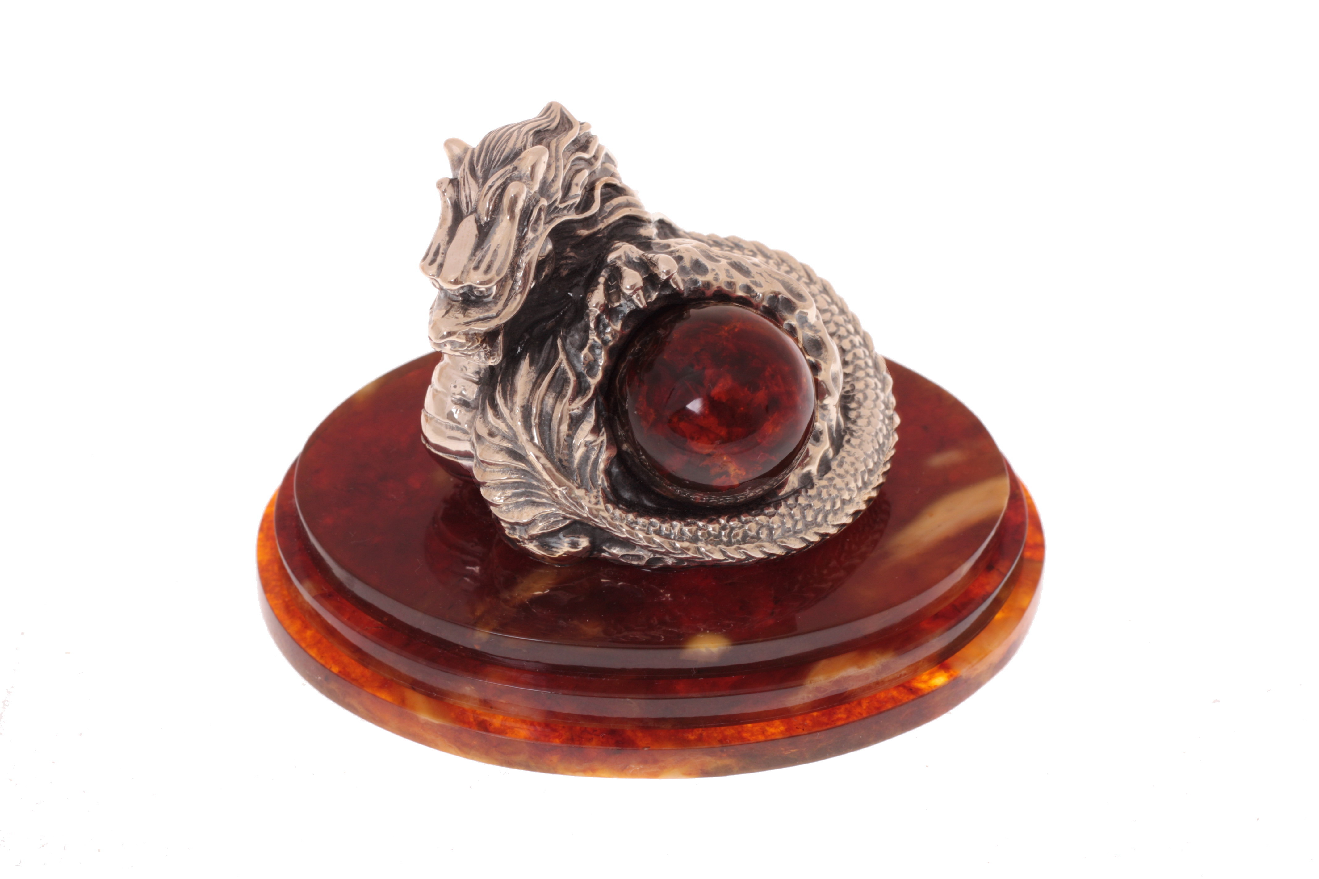 Сувенир "большой дракон" из янтаря. Состав: натуральный янтарь, белая ювелирная бронза. Может быть изготовлено из серебро 875 пробы. Поставляется в подарочном футляре. В случае отсутствия товара на складе, срок изготовления и поставки от 3-х недель.