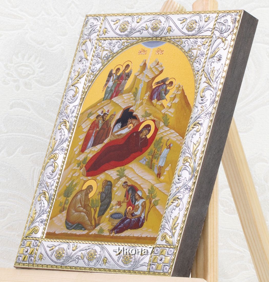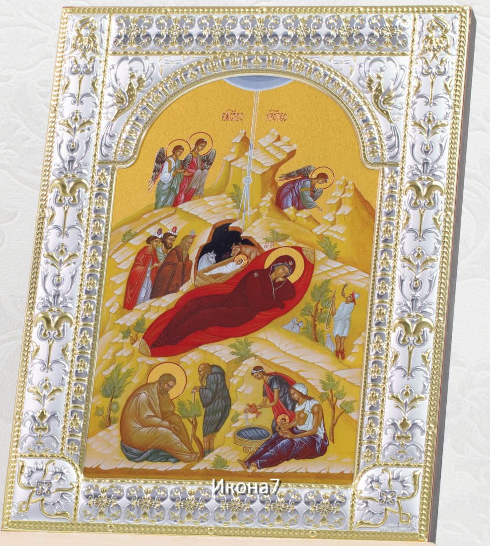 Икона: Рамка иконы изготовлена из металла, покрытого серебром. Оклад имеет штамп европейского стандарта.Икона изготовлена с использованием традиционной ручной обработки драгоценных металлов и высококачественных материалов. Технология MIRO SILVER включает поверхностную обработку покрытия, что дает большую стойкость к окисляющему слою чистого серебра 999,95%, по сравнению с обычными покрытиями.
