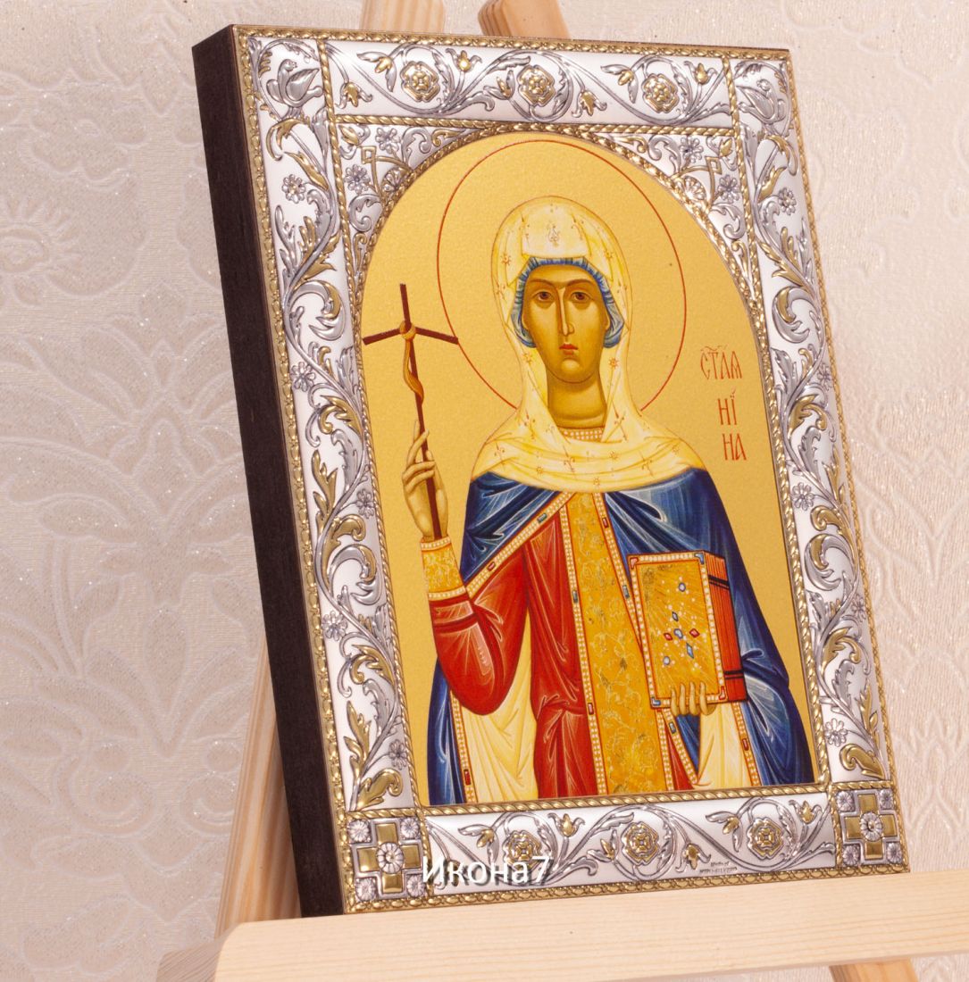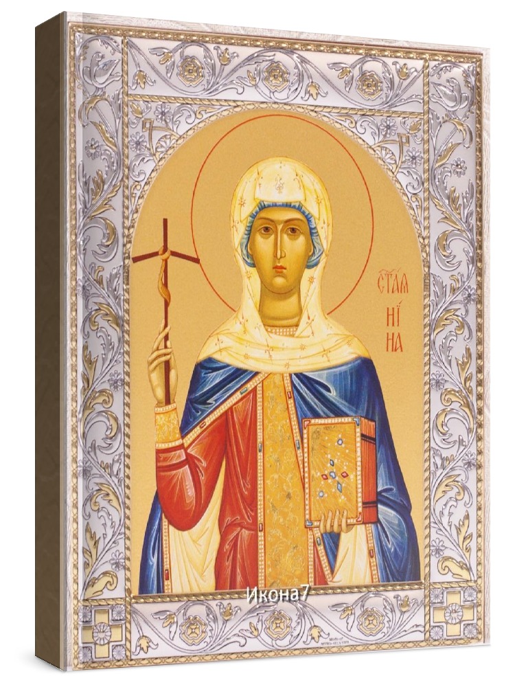 Икона нина просветительница грузии (14х18см). Икона: Икона выполнена на доске 18 мм с использованием особой технологии фона жидкого золота. Изображение нанесено методом UV-печати, гарантирующим защиту от ультрафиолетовых лучей, обеспечивающим долговечность, чистоту и яркость красок. Поверхность иконы покрыта бесцветным лаком, дающим дополнительную защиту. Оклад иконы изготовлен по технологии Miro Silver. Miro Silver mdash; новый металл с поверхностной обработкой, который включает слой чистого серебра 999,95 deg;, полученный атомным процессом. Это придает драгоценному металлу уникальное качество, превосходящее традиционное производство. Покрытие имеет твердость и лучшую устойчивость к окислению по сравнению с обычными покрытиями. Процесс с использованием чистого серебра 999,95 deg; обеспечивает инновационное и эстетическое преимущество: продукт более устойчив к механическим нагрузкам и царапинам, а драгоценный металл для декоративных целей отражает свет и подчеркивает всю его красоту. Драгоценная поверхность и идеальное сочетание с нашим дизайном делают каждую икону уникальной. Драгоценный оклад Miro Silver состоит из листа алюминия. Он получает поверхностную обработку с помощью PVD технологии нанесения тонкого слоя серебра. Благодаря специальному станку (пресс-форме) металлу придается рельефный 3D объем. Верхний слой покрывается прозрачным лаком, что позволяет надолго сохранять его яркий блеск. Выбрать икону можно в 3-х размерах. 9*10,5см, 14*18 см, 18*24см. Для каждой иконы можно дополнительно приобрести киот из сосны. Он служит как защита от пыли и механических воздействий, так и в качестве украшения. Если вы хотите сразу 2 иконы, то вам также подойдет складень. Он облицован темно-бордовый бархат с золотым красивым замочком. Вторая икона приобретается дополнительно. Рамка иконы изготовлена из металла, покрытого серебром. Оклад имеет штамп европейского стандарта. Икона упакована в подарочную коробку. Производство - Россия-Италия Складень: Складень - составное произведение из двух вставных икон размером 14*18см и самого складня. Вторая икона в комплекте не идет, приобретается дополнительно. Облицовка складня - темно-бордовый бархат с золотым красивым замочком. Материал каркаса складня - МДФ и жесткий картон. Размер сложенного складня - 16*20*6см Размер разложенного складня - 32*20*3см (длинна варьируется от угла открытия) Киот со стеклом: Размер - 21*25*4см Материал - сосна