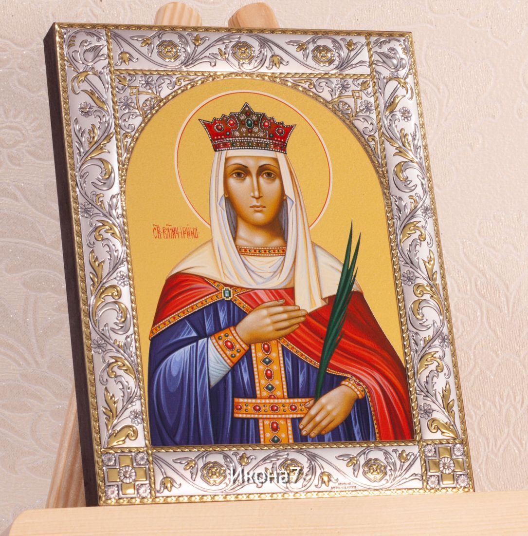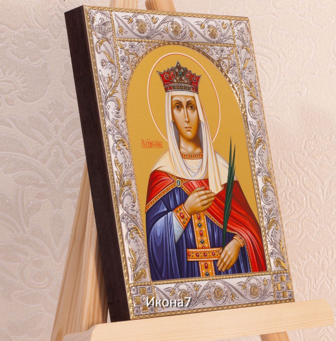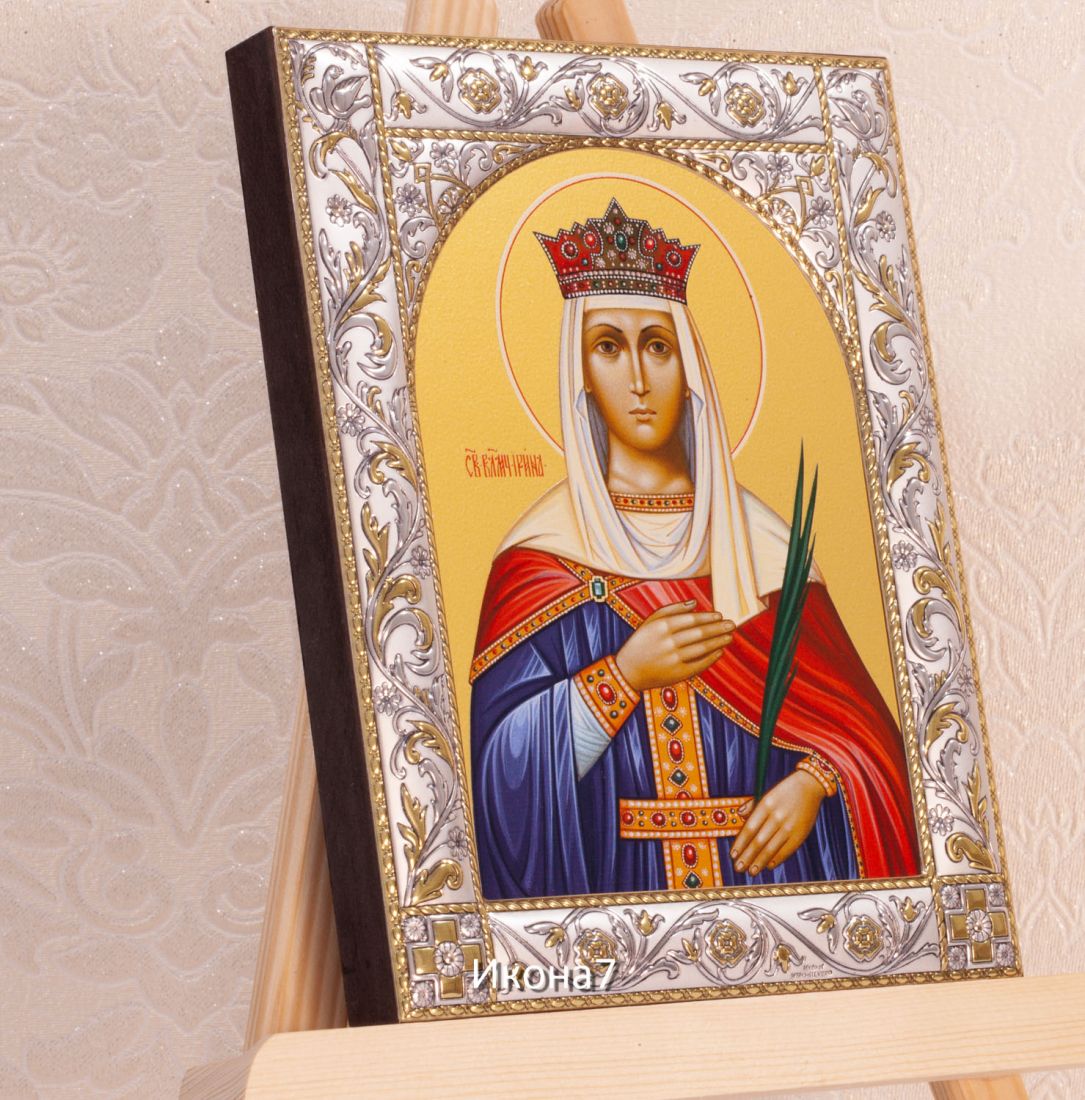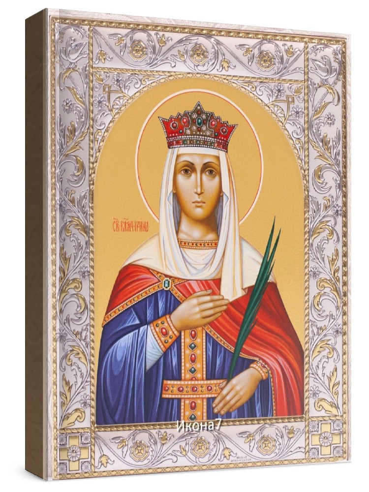 Икона ирина великомученица (14х18см). Икона: Икона выполнена на доске 18 мм с использованием особой технологии фона жидкого золота. Изображение нанесено методом UV-печати, гарантирующим защиту от ультрафиолетовых лучей, обеспечивающим долговечность, чистоту и яркость красок. Поверхность иконы покрыта бесцветным лаком, дающим дополнительную защиту. Оклад иконы изготовлен по технологии Miro Silver. Miro Silver mdash; новый металл с поверхностной обработкой, который включает слой чистого серебра 999,95 deg;, полученный атомным процессом. Это придает драгоценному металлу уникальное качество, превосходящее традиционное производство. Покрытие имеет твердость и лучшую устойчивость к окислению по сравнению с обычными покрытиями. Процесс с использованием чистого серебра 999,95 deg; обеспечивает инновационное и эстетическое преимущество: продукт более устойчив к механическим нагрузкам и царапинам, а драгоценный металл для декоративных целей отражает свет и подчеркивает всю его красоту. Драгоценная поверхность и идеальное сочетание с нашим дизайном делают каждую икону уникальной. Драгоценный оклад Miro Silver состоит из листа алюминия. Он получает поверхностную обработку с помощью PVD технологии нанесения тонкого слоя серебра. Благодаря специальному станку (пресс-форме) металлу придается рельефный 3D объем. Верхний слой покрывается прозрачным лаком, что позволяет надолго сохранять его яркий блеск. Выбрать икону можно в 3-х размерах. 9*10,5см, 14*18 см, 18*24см. Для каждой иконы можно дополнительно приобрести киот из сосны. Он служит как защита от пыли и механических воздействий, так и в качестве украшения. Если вы хотите сразу 2 иконы, то вам также подойдет складень. Он облицован темно-бордовый бархат с золотым красивым замочком. Вторая икона приобретается дополнительно. Рамка иконы изготовлена из металла, покрытого серебром. Оклад имеет штамп европейского стандарта. Икона упакована в подарочную коробку. Производство - Россия-Италия Складень: Складень - составное произведение из двух вставных икон размером 14*18см и самого складня. Вторая икона в комплекте не идет, приобретается дополнительно. Облицовка складня - темно-бордовый бархат с золотым красивым замочком. Материал каркаса складня - МДФ и жесткий картон. Размер сложенного складня - 16*20*6см Размер разложенного складня - 32*20*3см (длинна варьируется от угла открытия) Киот со стеклом: Размер - 21*25*4см Материал - сосна
