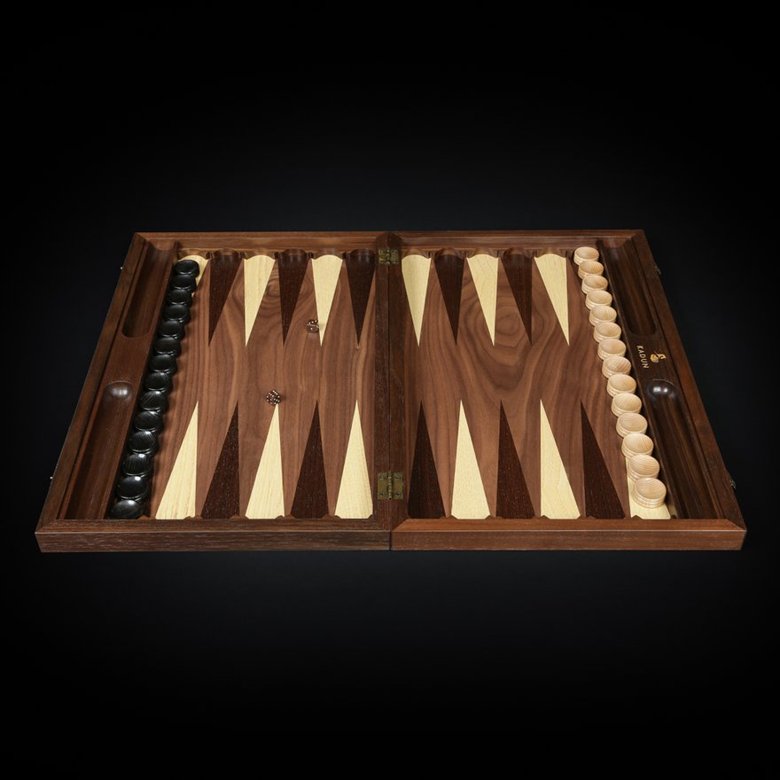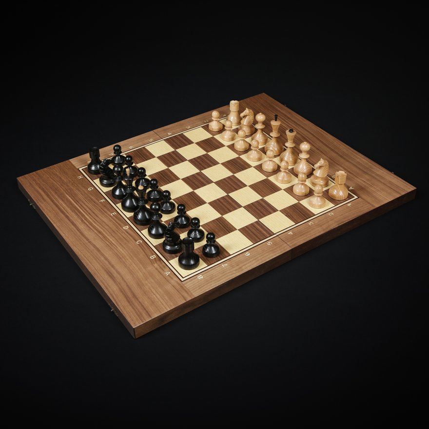 Шахматы-нарды-шашки три в одном "эверест" kadun. Фигуры Ретро фигуры светлые – ясень или бук, матовый лак фигуры темные - тонированный ясень или бук, матовый лак все с утяжелением, основания подклеены замшем. король – высота 7,5см диаметр подставки 3,8см пешка – высота 4см диаметр подставки 2,8см Доска в сложенном виде 450-290-50мм. шахматное поле - матовый лак клетка светлая – клен клетка темная - сапеле буквы - клен корпус - массив ореха, конструкция складной доски на петлях и замочках, внутри место для фигур и шашек Упаковка коробка из натурального льна ручной работы.