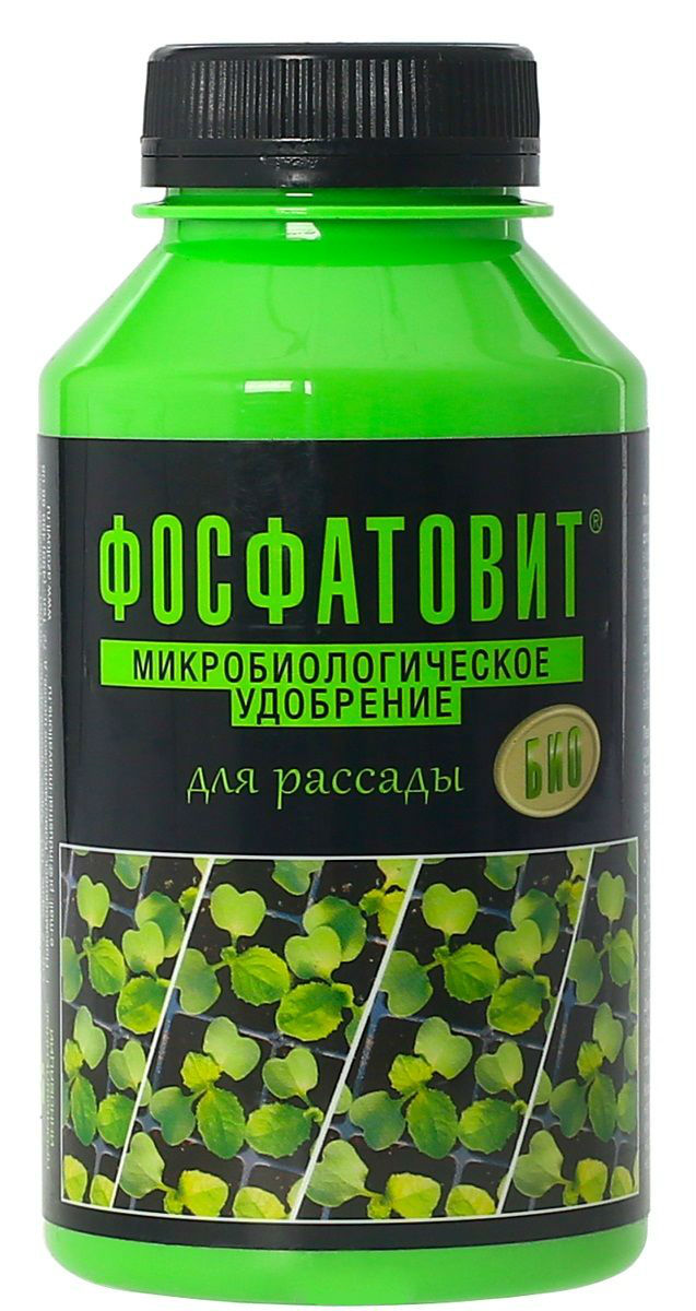 Фосфатовит для рассады (20). Фосфатовит для рассады – это микробиологическое удобрение, которое помогает обогатить почву достаточным количеством фосфора. В состав средства входят живые бактерии, которые способствуют переходу почвенного фосфора из сложных соединений в простые. В результате растения и плоды получают все необходимые элементы для правильного и здорового развития, а почва становится более плодородной. • Объем: 0,22 л • Тип: микробиологическое удобрение • Форма: жидкая • Состав: число жизнеспособных спор Paenibacillus mucilaginosus Pm 2906 не менее 0,12 млрд/см3 • Назначение: для рассады • Класс опасности: 4 (малоопасный продукт) • Упаковка: бутылка ПЭТ • Количество в упаковке: 20 штук • Срок хранения: 12 месяцев • Страна: Россия