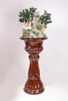 Легенда классика. Напольный фонтан с замком в скалах на классической подставке. Вода вытекает из верхнего гребня скал и стекает по уступам в чашу фонтана. Подставка выпускается в двух расцветках — зелёной и красно-коричневой. Размеры (ВхШхД): 125x42x50 см.