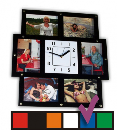 Часы парад мгновений с фоторамками 10х15см (6шт) 32х32см синие