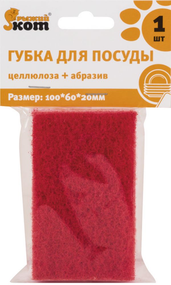 Губка для мытья посуды, целлюлоза. Бренд Рыжий кот Страна КИТАЙ Губка для мытья посуды, целлюлозная (1шт.) размер: 100*60*20мм материал: вискоза упаковка: ПВХ пакет с европодвесом Длительный срок службы – целлюлоза обладает волокнистой структурой, которая обеспечивает высокую устойчивость к разрывам и стиранию. Антибактериальные свойства – губчатая целлюлоза после использования очень быстро высыхает, становясь очень твердой, что снижает активность размножения бактерий и, следовательно, образования плесени и распространения неприятных запахов. Высокая гигроскопичность – волокнистая структура целлюлозы обеспечивает способность губки впитывать большое количество влаги. Приятные тактильные ощущения – натуральный материал в увлажненном состоянии приятен на ощупь. Гипоаллергенные свойства - целлюлоза является плотным гипоаллергенный материалом и прекрасно подходит для ежедневного применения.  развернуть описание ▼