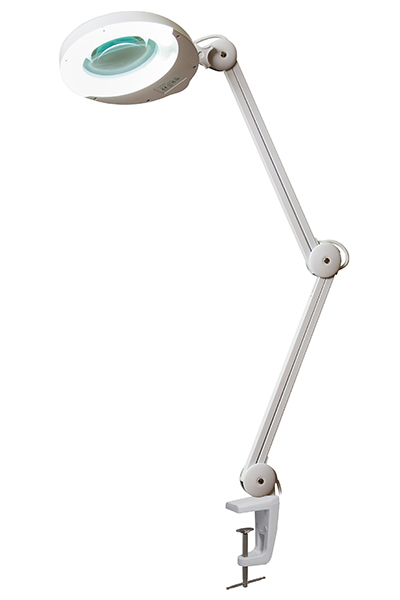 Лампа-лупа на кронштейне (3 диоптрии), 22вт. Бестеневая лампа со встроенной лупой является незаменимым инструментом для выполнения работ, требующих повышенной точности исполнения. Данная лампа может быть использована как в домашних условиях, так и в офисах, в лабораториях, в мастерских, в кабинетах маникюра и педикюра, и во многих других сферах человеческой деятельности, требующих повышенной точности при выполнении каких-либо операций. Данная модель оснащена кронштейном, позволяющим настроить высоту и угол наклона, струбциной для крепления к краю стола и люминесцентной лампой мощностью 22Вт. Мощность линзы - 3 диоптрии. Артикул: h10442 Бренд: harizma