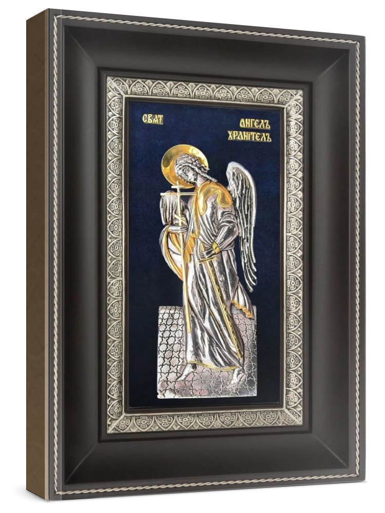 Икона ангел хранитель (18х29), серебро. Икона ручной работы. Образ выполнен из металлической основы, покрытой серебром (толщиной 15 микрон) и золотом (толщиной 2 микрона) методом гальванопластики. Рама изготовлена из ценных пород дерева (ясень) и покрыта лаком. Размер иконы: 18,5x29 см. Производство: Россия.