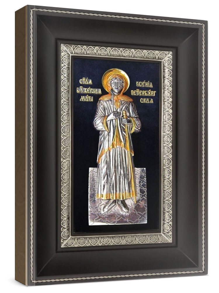 Икона ксения петербургская (18х29), серебро