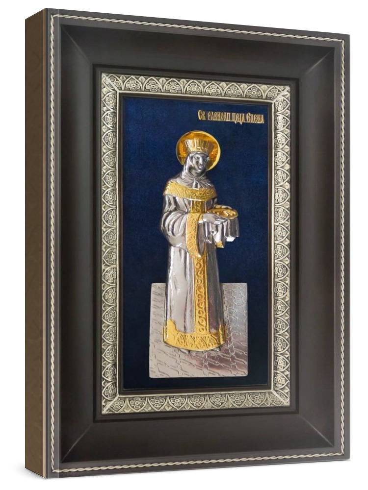 Икона елена, царица (18х29), серебро. Икона ручной работы. Образ Святой выполнен из металлической основы, покрытой серебром (толщиной 15 микрон) и золотом (толщиной 2 микрона) методом гальванопластики. Рама изготовлена из ценных пород дерева (ясень) и покрыта лаком. Размер иконы: 18,5x29 см. Производство: Россия.