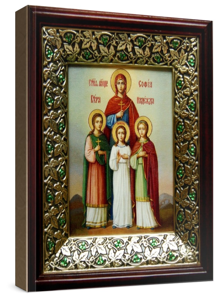 Икона вера, надежда, любовь и софия (21х24), киот со стразами