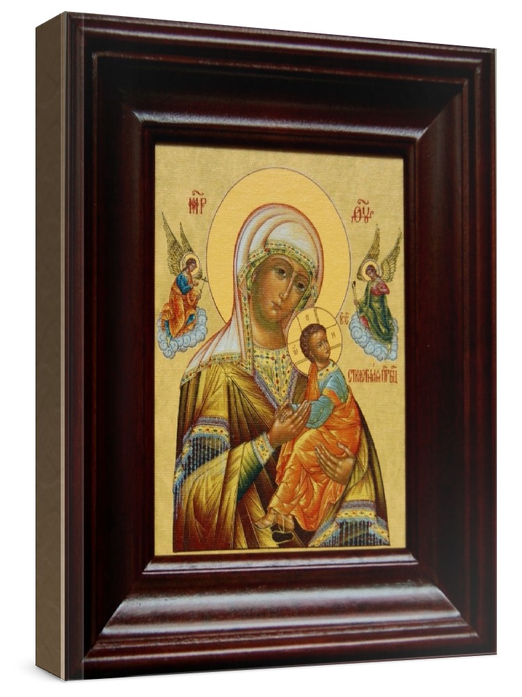 Страстная икона бм (21х24), простой киот. Лик нанесен методом шелкографии на художественном холсте и покрыт специальным лаком, что обеспечивает долгую сохранность яркости красок (гарантия - 20 лет). Полный размер иконы с киотом: 21х24 см. Икона под стеклом. Киот (рамка) изготовлен из березы.