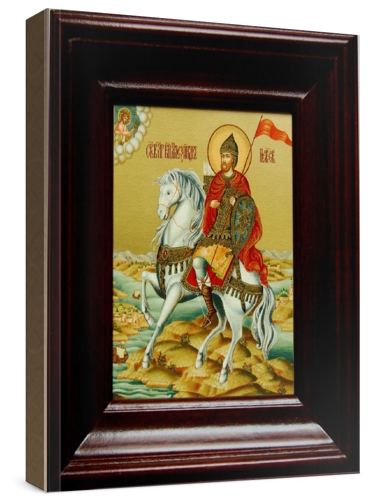 Икона александр невский (21х24), простой киот. Лик нанесен методом шелкографии на художественном холсте и покрыт специальным лаком, что обеспечивает долгую сохранность яркости красок (гарантия - 20 лет). Полный размер иконы с киотом: 21х24 см. Икона под стеклом. Киот (рамка) изготовлен из березы.