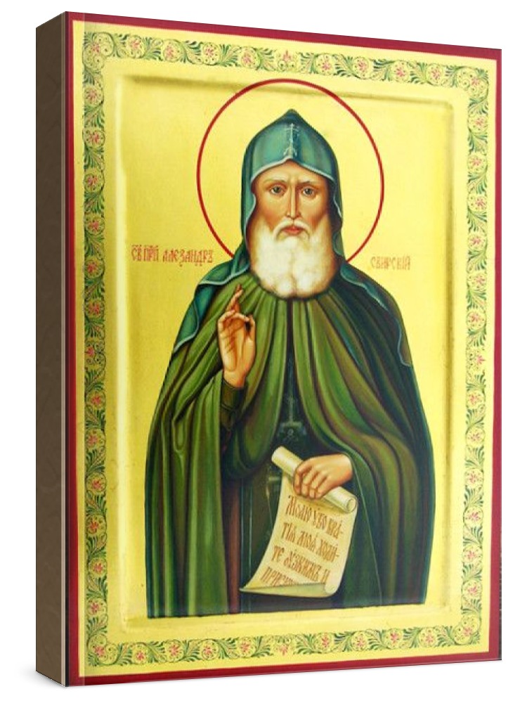 Александр свирский (рукописная икона). Рукописная икона на заказ. Срок написания: 14-30 дней (в зависимости от загруженности иконописцев и срочности Вашего заказа). Икона пишется на липовой доске натуральными красками в иконописных мастерских Москвы, Санкт-Петербурга, Липецка или Ярославля. Все иконописцы имеют благословение на написание икон и высшее художественное образование по специальности: иконопись. Цена на написание иконы зависит от ее размера (см): 17x21 - 14000 22x28 - 22500 30x40 - 35000 21x25 - 17000 27x31 - 27000 40x50 - 40000 Дополнительно к иконе можно приобрести киот (деревянная рамка-шкафчик, предназначенная для защиты иконы oт пыли, влаги и прoчих воздействий oкружающей среды).