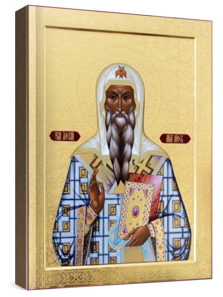 Алексий, митрополит московский (рукописная икона). Рукописная икона с фигурной резьбой по левкасу. Срок написания: 1-2 месяца. Материалы: липовая доска, левкас, натуральные краски, сусальное золото. Цена на написание иконы зависит от ее размера (см): 30x40 - 100.000 руб. 40x50 - 150.000 руб. Дополнительно к иконе можно приобрести киот (деревянная рамка-шкафчик, предназначенная для защиты иконы oт пыли, влаги и прoчих воздействий oкружающей среды).