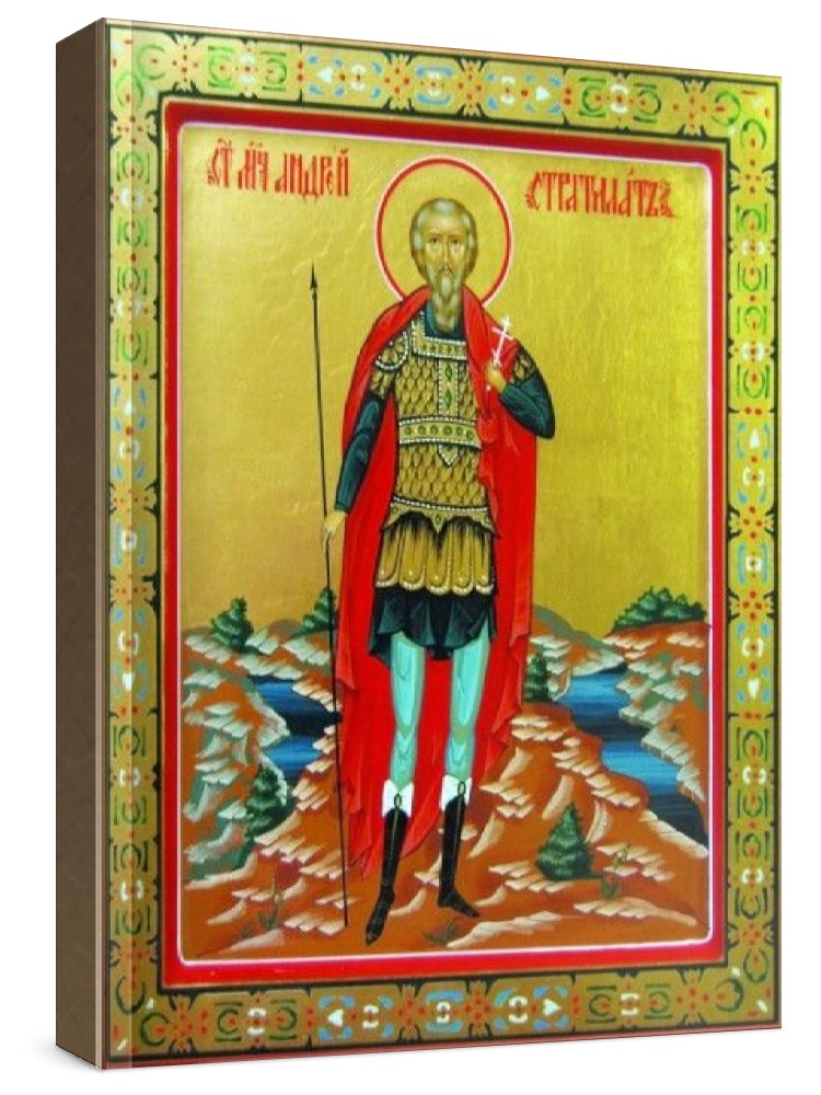 Андрей стратилат (рукописная икона). Рукописная икона на заказ. Срок написания: 5-20 дней (в зависимости от срочности Вашего заказа). Икона пишется на липовой доске натуральными красками в иконописных мастерских Москвы, Санкт-Петербурга, Липецка или Ярославля. Все иконописцы имеют благословение на написание икон и высшее художественное образование по специальности: иконопись. Цена на написание иконы зависит от ее размера (см): 13x16 - 8000 22x28 - 18000 30x40 - 30000 17x21 - 12000 27x31 - 22000 40x50 - 35000 21x25 - 15000 Дополнительно к иконе можно приобрести киот (деревянная рамка-шкафчик, предназначенная для защиты иконы oт пыли, влаги и прoчих воздействий oкружающей среды).