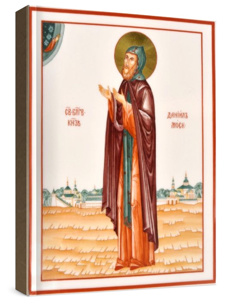 Даниил московский (рукописная икона). Рукописная икона на заказ. Срок написания: 5-20 дней (в зависимости от загруженности иконописцев и срочности Вашего заказа). Икона пишется на липовой доске натуральными красками в иконописных мастерских Москвы, Санкт-Петербурга, Липецка или Ярославля. Все иконописцы имеют благословение на написание икон и высшее художественное образование по специальности: иконопись. Цена на написание иконы зависит от ее размера (см): 13x16 - 7000 22x28 - 15000 30x40 - 25000 17x21 - 10000 27x31 - 18000 40x50 - 30000 21x25 - 12000 Дополнительно к иконе можно приобрести киот (деревянная рамка-шкафчик, предназначенная для защиты иконы oт пыли, влаги и прoчих воздействий oкружающей среды).