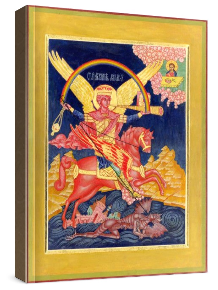 Михаил архангел (рукописная икона). Рукописная икона на заказ. Срок написания: 1-3 недели (в зависимости от загруженности иконописцев и срочности Вашего заказа). Икона пишется на липовой доске натуральными красками в иконописных мастерских Москвы, Санкт-Петербурга, Липецка или Ярославля. Все иконописцы имеют благословение на написание икон и высшее художественное образование по специальности: иконопись. Цена на написание иконы зависит от ее размера (см): 17x21 - 14000 22x28 - 24000 30x40 - 40000 21x25 - 18000 27x31 - 30000 40x50 - 50000 Дополнительно к иконе можно приобрести киот (деревянная рамка-шкафчик, предназначенная для защиты иконы oт пыли, влаги и прoчих воздействий oкружающей среды).