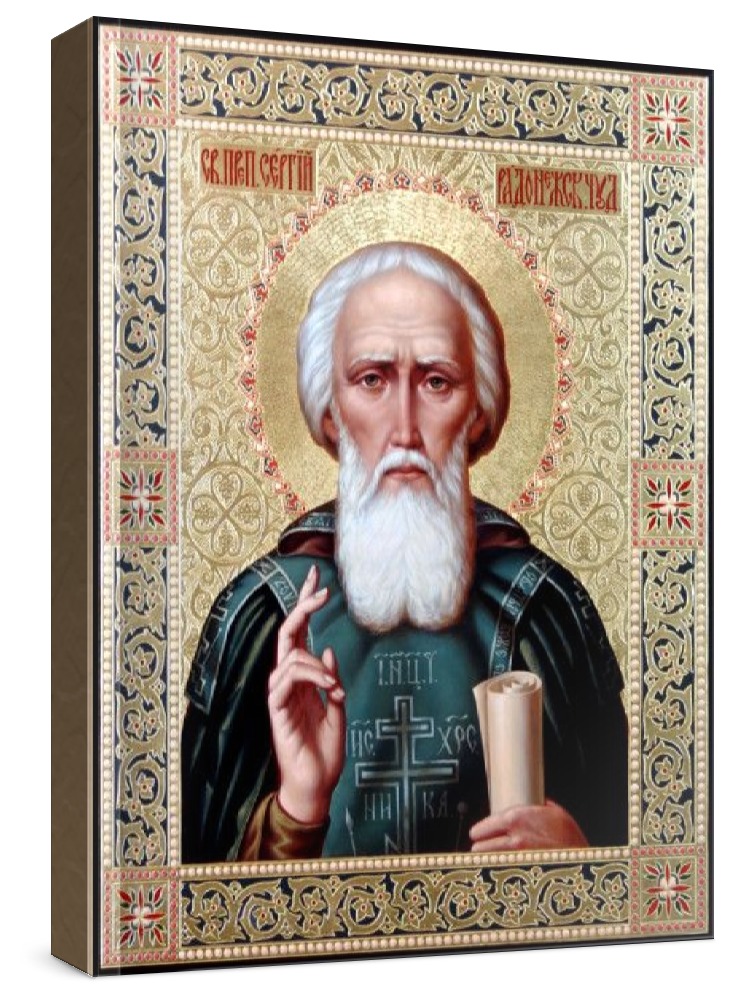 Сергий радонежский (рукописная икона). Рукописная икона с фигурной резьбой по левкасу. Срок написания: 1-2 месяца. Материалы: липовая доска, левкас, натуральные краски, сусальное золото. Цена на написание иконы зависит от ее размера (см): 30x40 - 200.000 руб. 40x50 - 250.000 руб. Дополнительно к иконе можно приобрести киот (деревянная рамка-шкафчик, предназначенная для защиты иконы oт пыли, влаги и прoчих воздействий oкружающей среды).