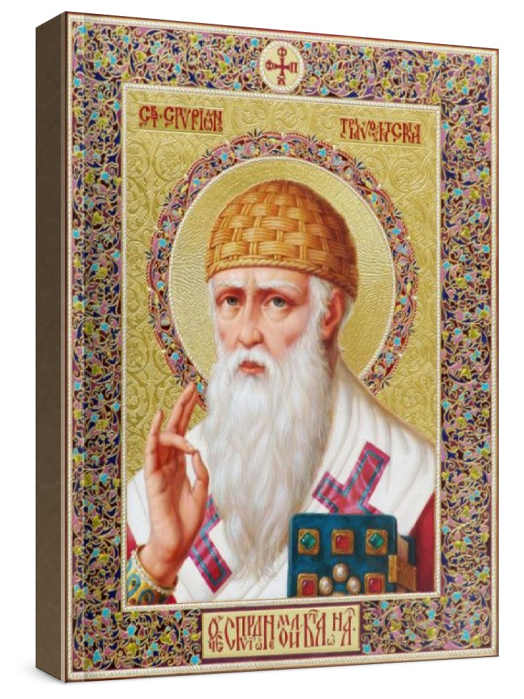 Спиридон тримифунтский (рукописная икона). Рукописная икона с фигурной резьбой по левкасу. Срок написания: 30-60 дней. Материалы: липовая доска, левкас, натуральные краски, сусальное золото. Цена на написание иконы зависит от ее размера (см): 30х40 - 100000 руб. 40х50 - 130000 руб.