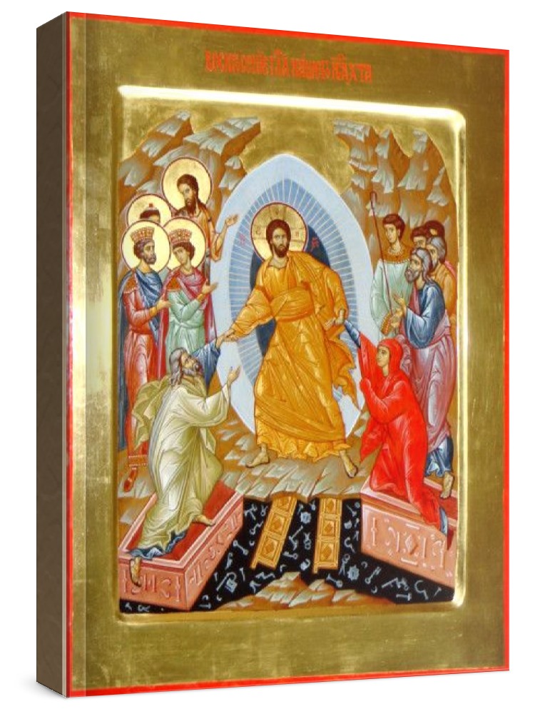 Воскресение христово (рукописная икона). Рукописная икона на заказ. Срок написания: 10-30 дней (в зависимости от загруженности иконописцев и срочности Вашего заказа). Икона пишется на липовой доске натуральными красками в иконописных мастерских Москвы, Санкт-Петербурга, Липецка или Ярославля. Все иконописцы имеют благословение на написание икон и высшее художественное образование по специальности: иконопись. Цена на написание иконы зависит от ее размера (см): 21x25 - 24000 30x40 - 45000 22x28 - 28000 40x50 - 55000 27x31 - 35000 Дополнительно к иконе можно приобрести киот (деревянная рамка-шкафчик, предназначенная для защиты иконы oт пыли, влаги и прoчих воздействий oкружающей среды).