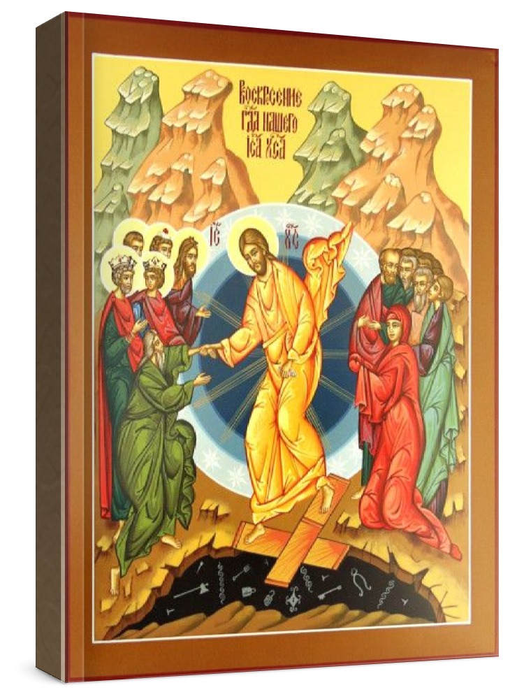 Воскресение христово (рукописная икона). Рукописная икона на заказ. Срок написания: 14-40 дней (в зависимости от срочности Вашего заказа). Икона пишется на липовой доске натуральными красками в иконописных мастерских Москвы, Санкт-Петербурга, Липецка или Ярославля. Все иконописцы имеют благословение на написание икон и высшее художественное образование по специальности: иконопись. Цена на написание иконы зависит от ее размера (см): 27x31 - 40.000 руб. 30x40 - 50.000 руб. 40x50 - 60.000 руб. Дополнительно к иконе можно приобрести киот (деревянная рамка-шкафчик, предназначенная для защиты иконы oт пыли, влаги и прoчих воздействий oкружающей среды).