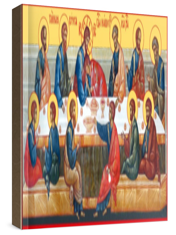 Тайная вечеря (рукописная икона). Рукописная икона на заказ. Срок написания: 14-45 дней (в зависимости от срочности Вашего заказа). Икона пишется на липовой доске натуральными красками в иконописных мастерских Москвы, Санкт-Петербурга, Липецка или Ярославля. Все иконописцы имеют благословение на написание икон и высшее художественное образование по специальности: иконопись. Цена на написание иконы зависит от ее размера (см): 30х55 - 60.000 руб. 50х70 - 80.000 руб.