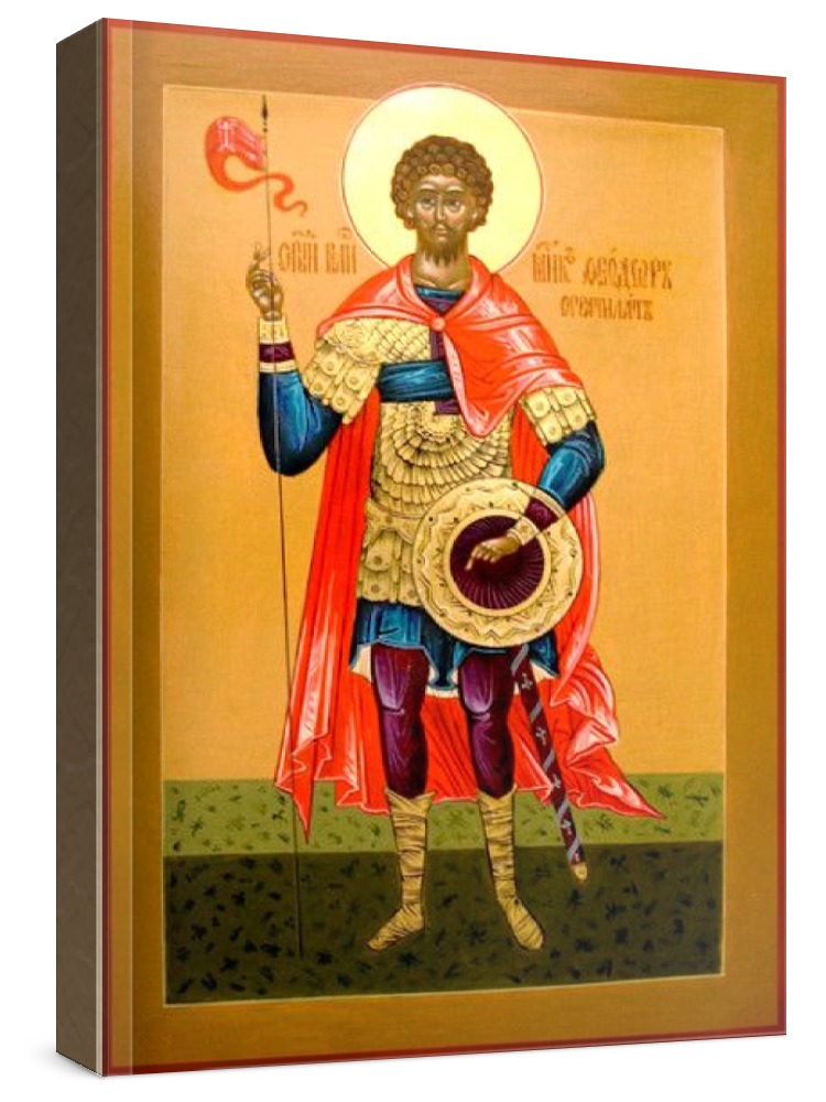 Феодор стратилат (рукописная икона). Рукописная икона на заказ. Срок написания: 5-20 дней (в зависимости от загруженности иконописцев и срочности Вашего заказа). Икона пишется на липовой доске натуральными красками в иконописных мастерских Москвы, Санкт-Петербурга, Липецка или Ярославля. Все иконописцы имеют благословение на написание икон и высшее художественное образование по специальности: иконопись. Цена на написание иконы зависит от ее размера (см): 13x16 - 7000 22x28 - 18000 30x40 - 30000 17x21 - 12000 27x31 - 25000 40x50 - 35000 21x25 - 15000 Дополнительно к иконе можно приобрести киот (деревянная рамка-шкафчик, предназначенная для защиты иконы oт пыли, влаги и прoчих воздействий oкружающей среды).