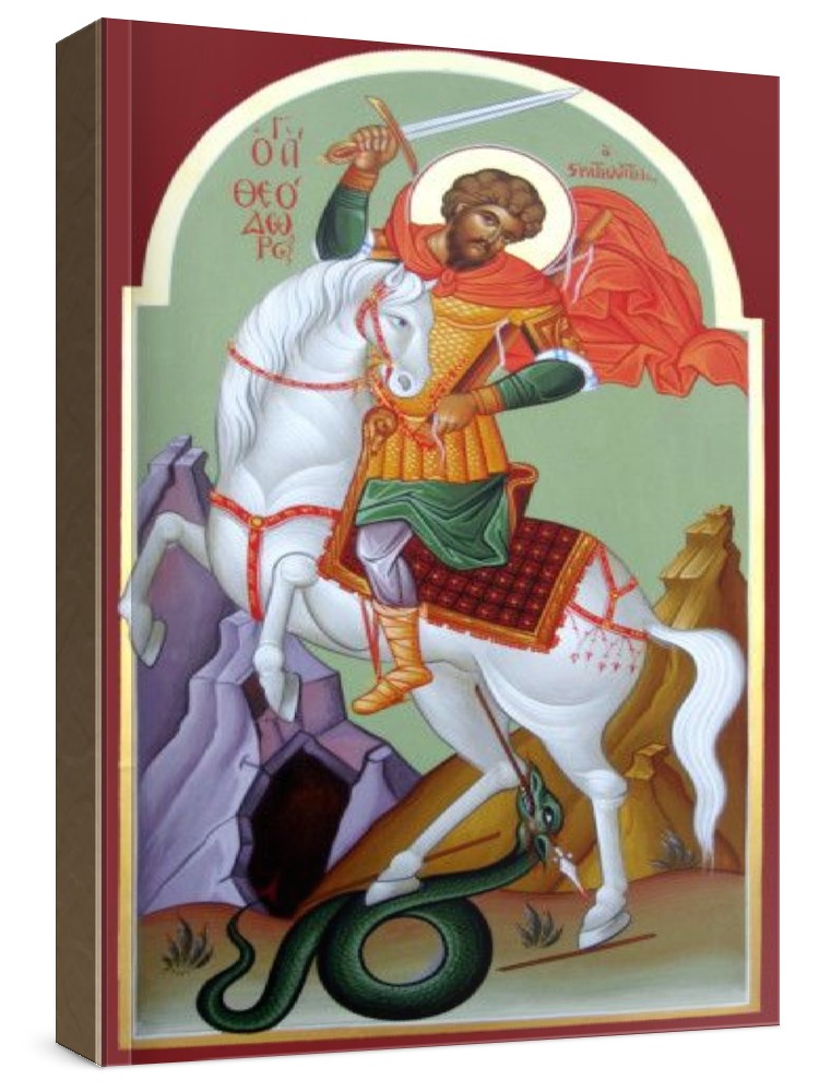 Феодор стратилат (рукописная икона). Рукописная икона на заказ. Срок написания: 5-20 дней (в зависимости от загруженности иконописцев и срочности Вашего заказа). Икона пишется на липовой доске натуральными красками в иконописных мастерских Москвы, Санкт-Петербурга, Липецка или Ярославля. Все иконописцы имеют благословение на написание икон и высшее художественное образование по специальности: иконопись. Цена на написание иконы зависит от ее размера (см): 13x16 - 8000 22x28 - 20000 30x40 - 35000 17x21 - 13000 27x31 - 27500 40x50 - 40000 21x25 - 17500 Дополнительно к иконе можно приобрести киот (деревянная рамка-шкафчик, предназначенная для защиты иконы oт пыли, влаги и прoчих воздействий oкружающей среды).