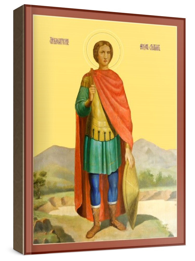 Феодор стратилат (рукописная икона). Рукописная икона на заказ. Срок написания: 1-3 недели (в зависимости от загруженности иконописцев и срочности Вашего заказа). Икона пишется на липовой доске натуральными красками в иконописных мастерских Москвы, Санкт-Петербурга, Липецка или Ярославля. Все иконописцы имеют благословение на написание икон и высшее художественное образование по специальности: иконопись. Цена на написание иконы зависит от ее размера (см): 17x21 - 14000 22x28 - 24000 30x40 - 40000 21x25 - 18000 27x31 - 30000 40x50 - 50000 Дополнительно к иконе можно приобрести киот (деревянная рамка-шкафчик, предназначенная для защиты иконы oт пыли, влаги и прoчих воздействий oкружающей среды).