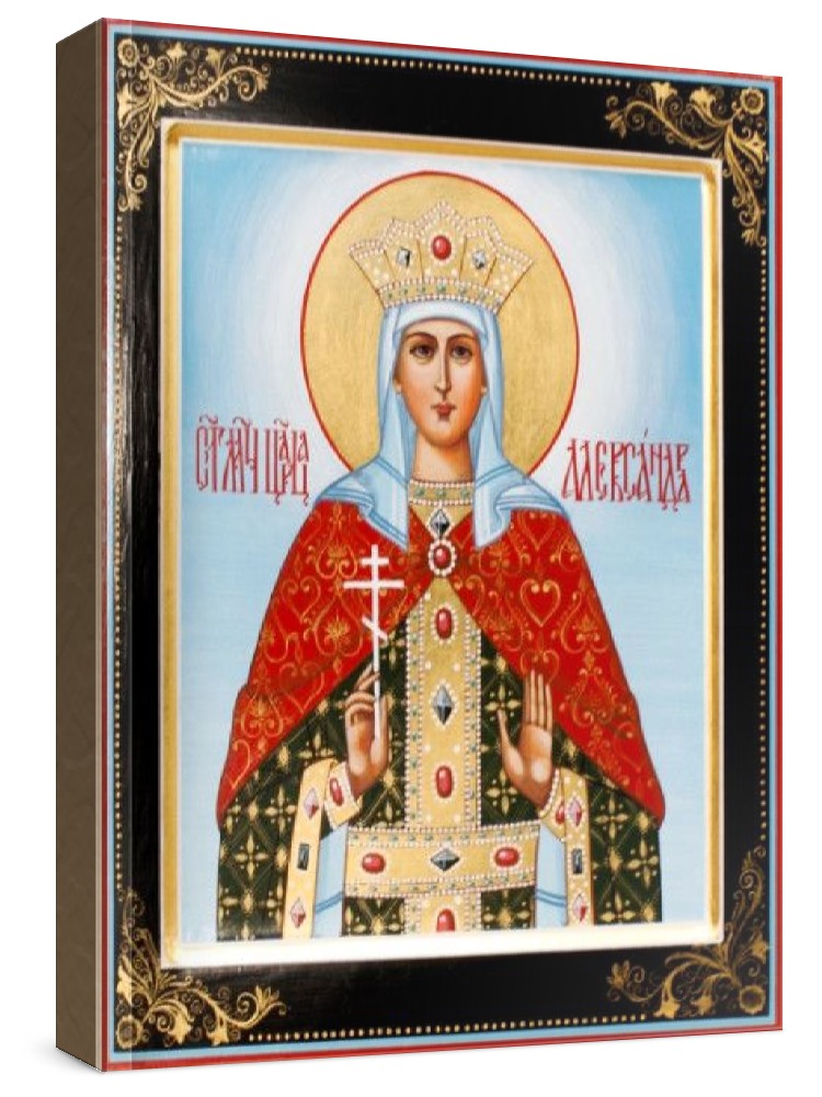 Александра римская (рукописная икона). Рукописная икона на заказ. Срок написания: 5-20 дней (в зависимости от загруженности иконописцев и срочности Вашего заказа). Икона пишется на липовой доске натуральными красками в иконописных мастерских Москвы, Санкт-Петербурга, Липецка или Ярославля. Все иконописцы имеют благословение на написание икон и высшее художественное образование по специальности: иконопись. Цена на написание иконы зависит от ее размера (см): 13x16 - 8000 22x28 - 20000 30x40 - 35000 17x21 - 13000 27x31 - 27500 40x50 - 40000 21x25 - 17500 Дополнительно к иконе можно приобрести киот (деревянная рамка-шкафчик, предназначенная для защиты иконы oт пыли, влаги и прoчих воздействий oкружающей среды).