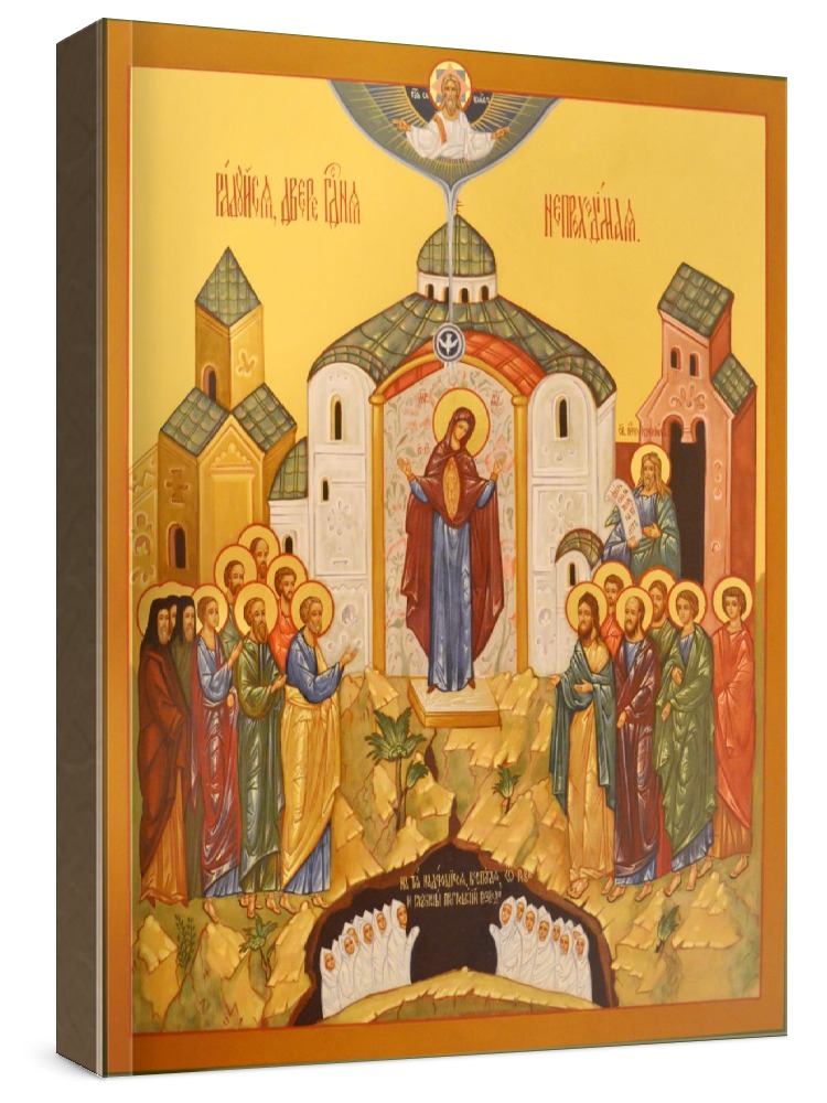 Непроходимая дверь (рукописная икона). Рукописная икона на заказ. Срок написания: 5-20 дней (в зависимости от загруженности иконописцев и срочности Вашего заказа). Икона пишется на липовой доске натуральными красками в иконописных мастерских Москвы, Санкт-Петербурга, Липецка или Ярославля. Все иконописцы имеют благословение на написание икон и высшее художественное образование по специальности: иконопись. Цена на написание иконы зависит от ее размера (см): 30x40 - 45000 40x50 - 50000 Дополнительно к иконе можно приобрести киот (деревянная рамка-шкафчик, предназначенная для защиты иконы oт пыли, влаги и прoчих воздействий oкружающей среды).