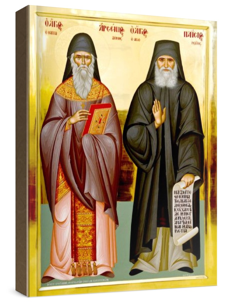 Арсений каппадокийский и паисий святогорец (рукописная икона). Рукописная икона на заказ. Срок написания: 5-20 дней (в зависимости от загруженности иконописцев и срочности Вашего заказа). Икона пишется на липовой доске натуральными красками в иконописных мастерских Москвы, Санкт-Петербурга, Липецка или Ярославля. Все иконописцы имеют благословение на написание икон и высшее художественное образование по специальности: иконопись. Цена на написание иконы зависит от ее размера (см): 13x16 - 8000 22x28 - 18000 30x40 - 30000 17x21 - 12000 27x31 - 22000 40x50 - 35000 21x25 - 15000 Дополнительно к иконе можно приобрести киот (деревянная рамка-шкафчик, предназначенная для защиты иконы oт пыли, влаги и прoчих воздействий oкружающей среды).