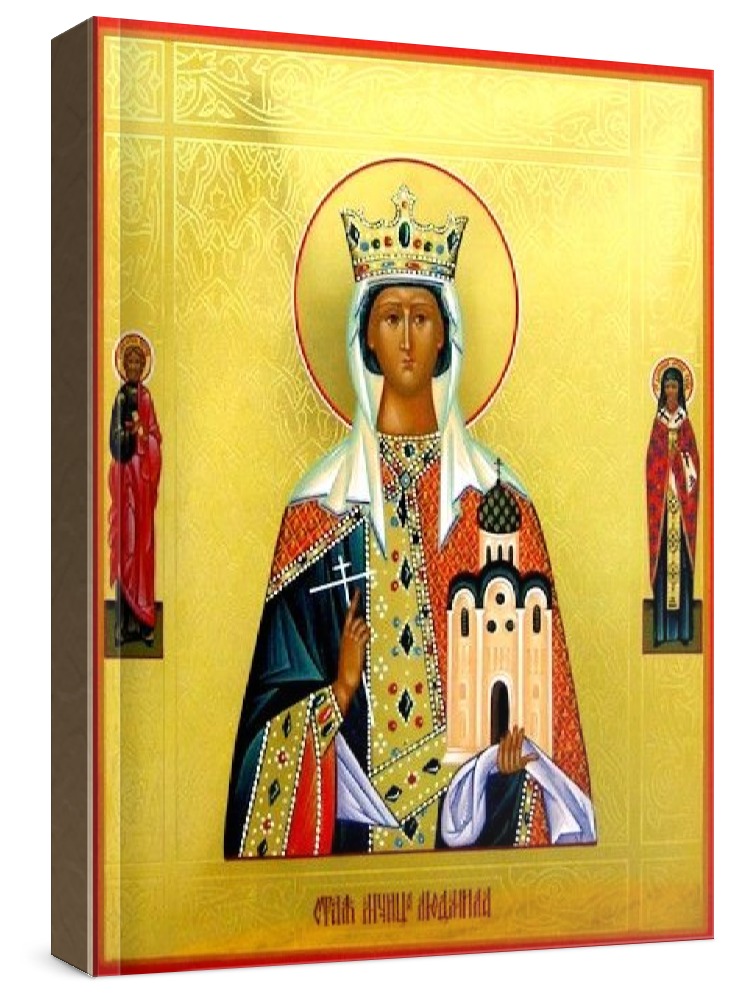 Людмила чешская (рукописная икона). Рукописная икона с фигурной резьбой по левкасу. Срок написания: 21-45 дней. Материалы: липовая доска, левкас, натуральные краски, сусальное золото. Цена на написание иконы зависит от ее размера (см): 21x25 - 40000 30x40 - 75000 22x28 - 50000 40x50 - 100000 27x31 - 60000 Дополнительно к иконе можно приобрести киот (деревянная рамка-шкафчик, предназначенная для защиты иконы oт пыли, влаги и прoчих воздействий oкружающей среды).