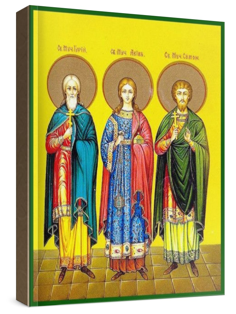 Гурий, самон и авив (рукописная икона). Рукописная икона на заказ. Срок написания: 5-20 дней (в зависимости от загруженности иконописцев и срочности Вашего заказа). Икона пишется на липовой доске натуральными красками в иконописных мастерских Москвы, Санкт-Петербурга, Липецка или Ярославля. Все иконописцы имеют благословение на написание икон и высшее художественное образование по специальности: иконопись. Цена на написание иконы зависит от ее размера (см): 13x16 - 7000 27x31 - 18000 17x21 - 10000 30x40 - 25000 21x25 - 12000 40x50 - 30000 22x28 - 15000 Дополнительно к иконе можно приобрести киот (деревянная рамка-шкафчик, предназначенная для защиты иконы oт пыли, влаги и прoчих воздействий oкружающей среды).